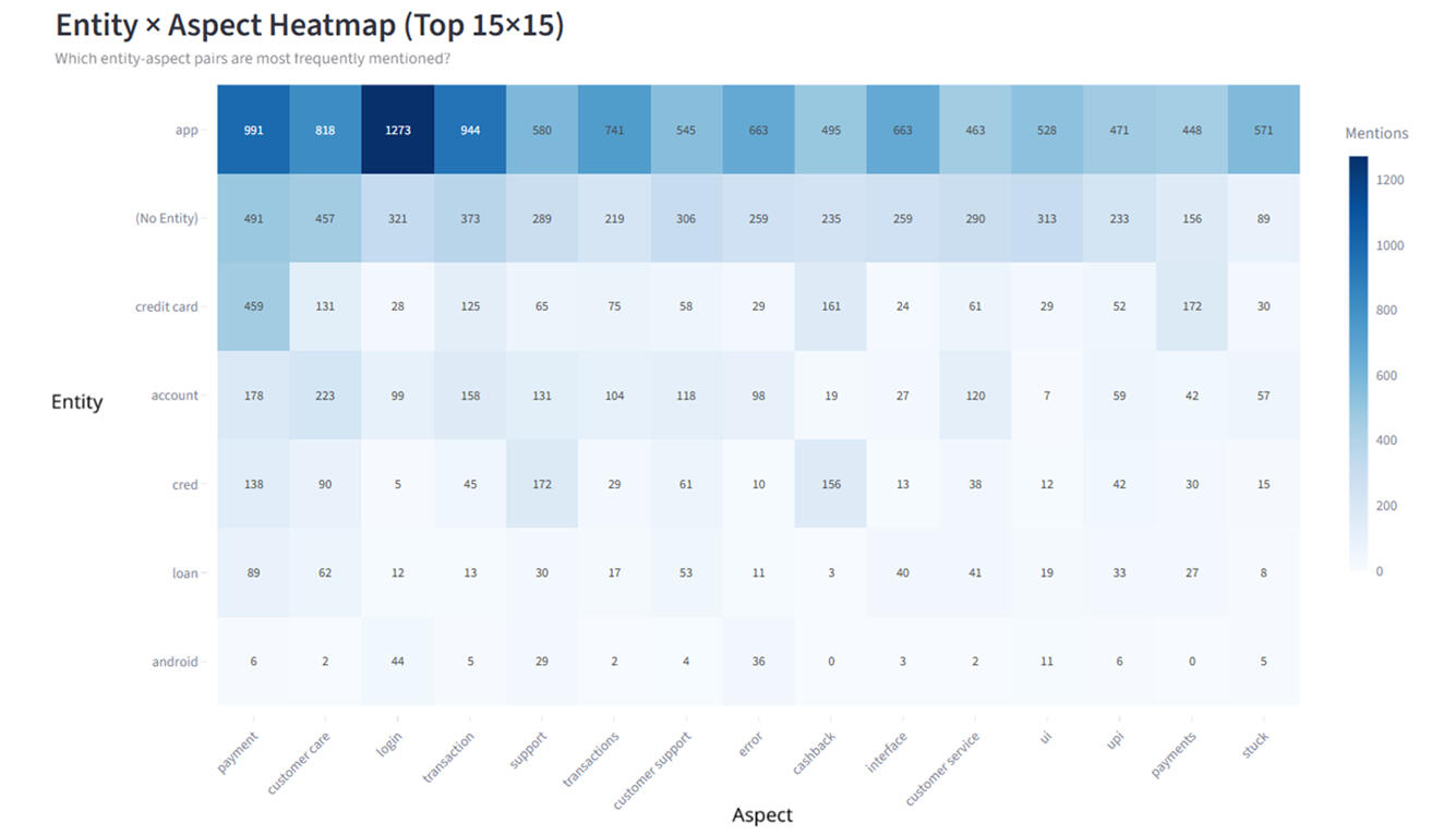 Finlytix identifies the most active entity–aspect combinations across cards, banking, lending and UPI, surfacing early failure patterns and sentiment shifts long before they appear in complaints or performance metrics.