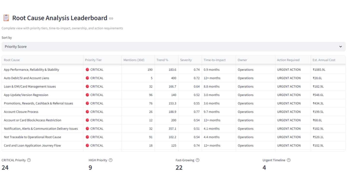 BFSI product intelligence that identifies failing features, extracts root causes from customer voice, and delivers engineering-ready fixes.